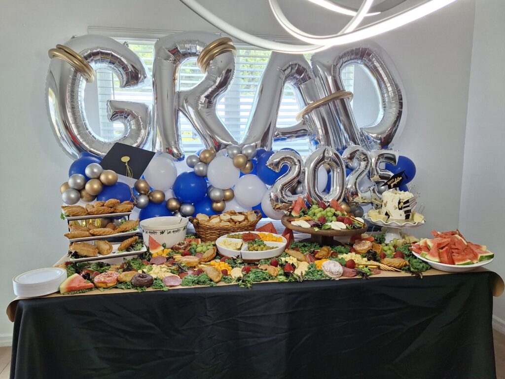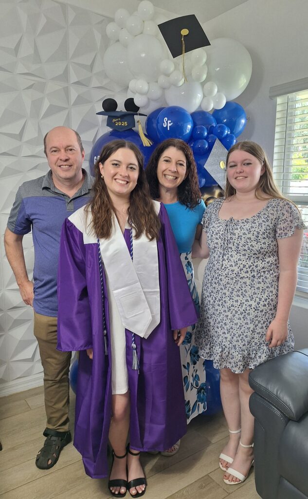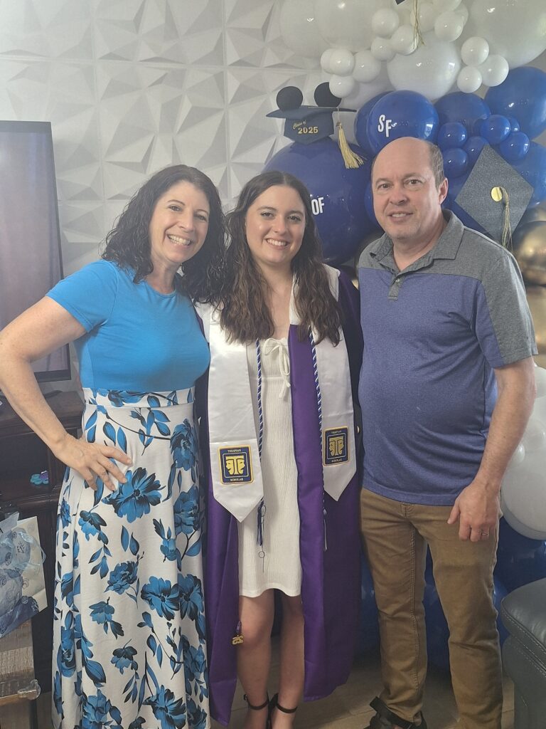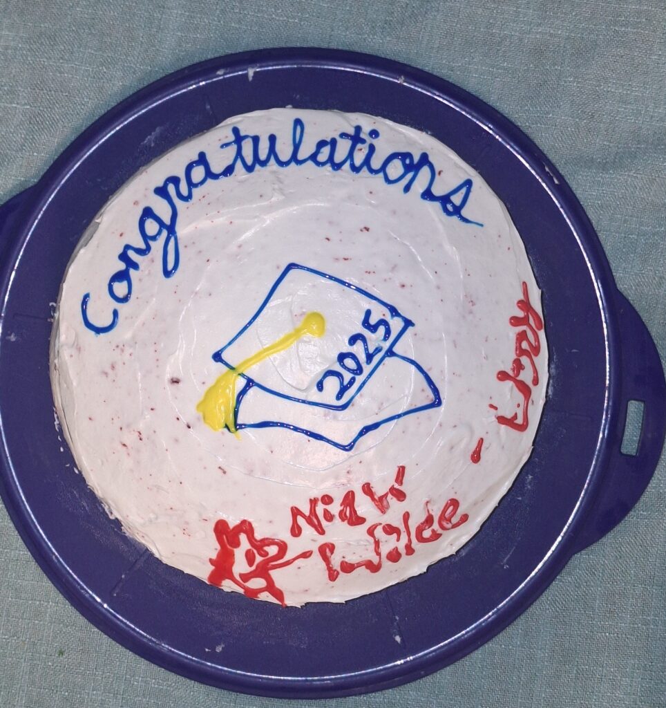 Off to the graduation party at Yara’s house. Dad made a cake and Rachel decorated it!