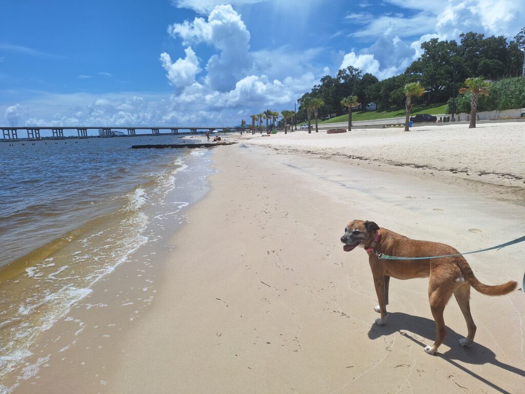 We are way out in the water but it’s not over waist deep! The Biloxi Bay water was warm and the sand was soft. Luna likes to keep an eye on us but is not interested in going in the water at all!