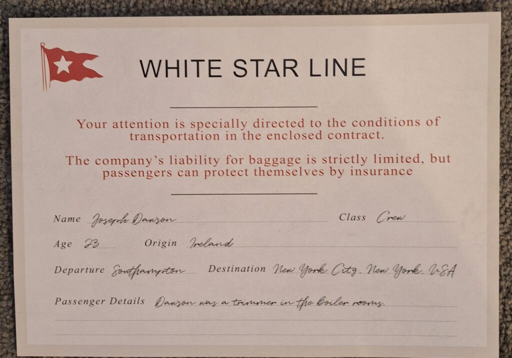 The Titanic Immersive Voyage Experience. Everyone gets a passenger to follow: