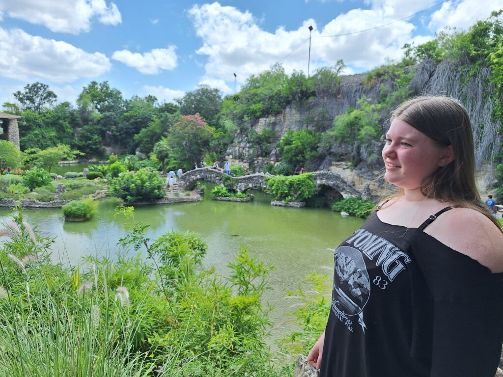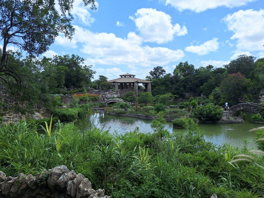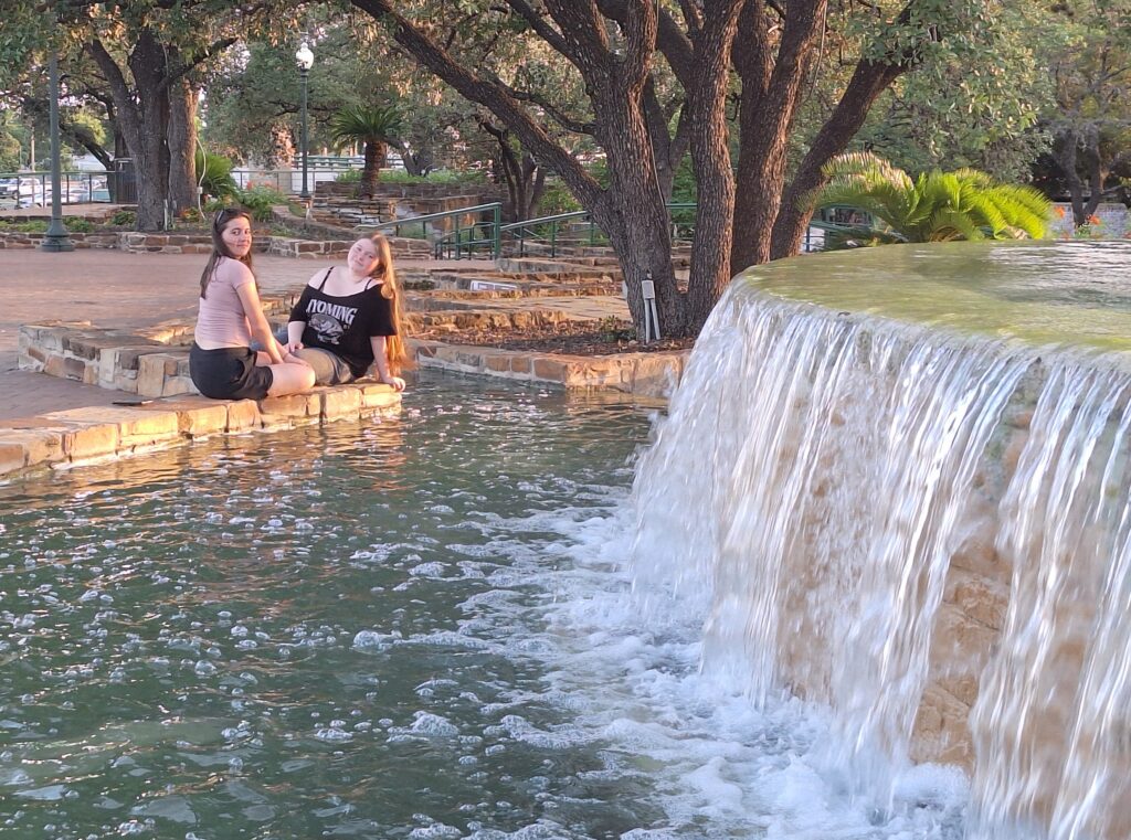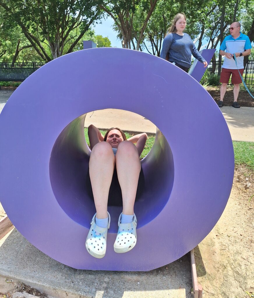 Then we walked to Hemisfair Park, a local free park. It was amazing! There were outside games, gardens, playgrounds, sculptures, and , art, music and a plethora of water features.