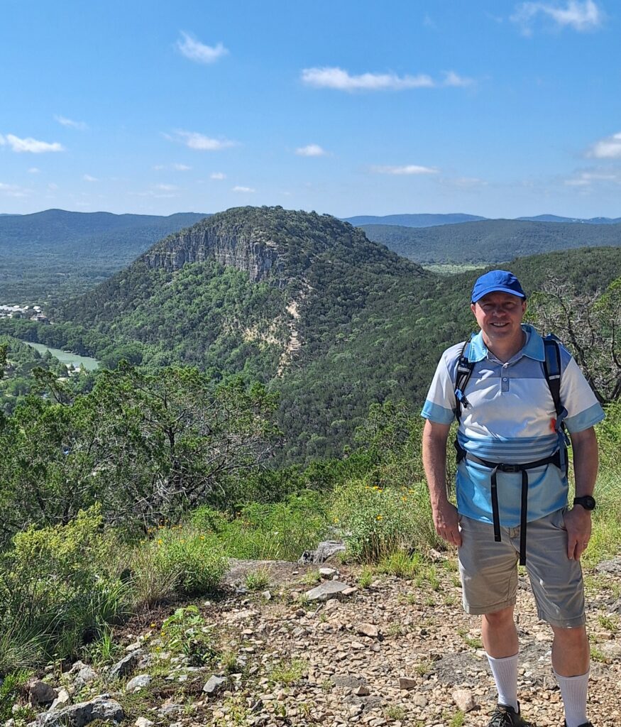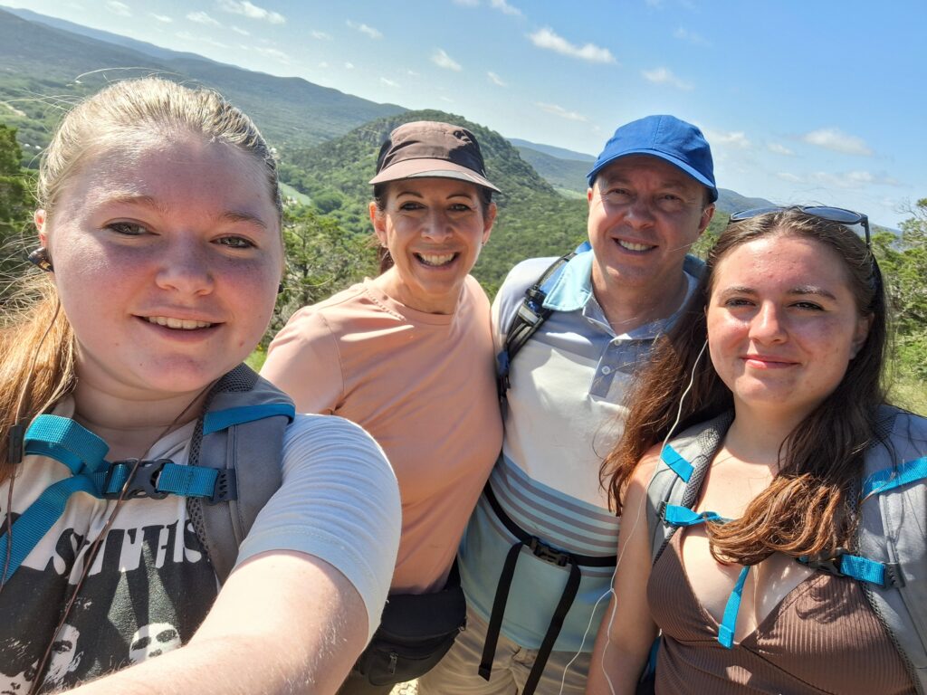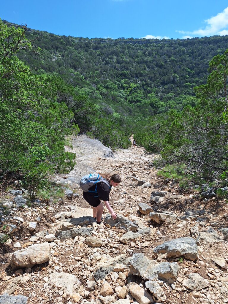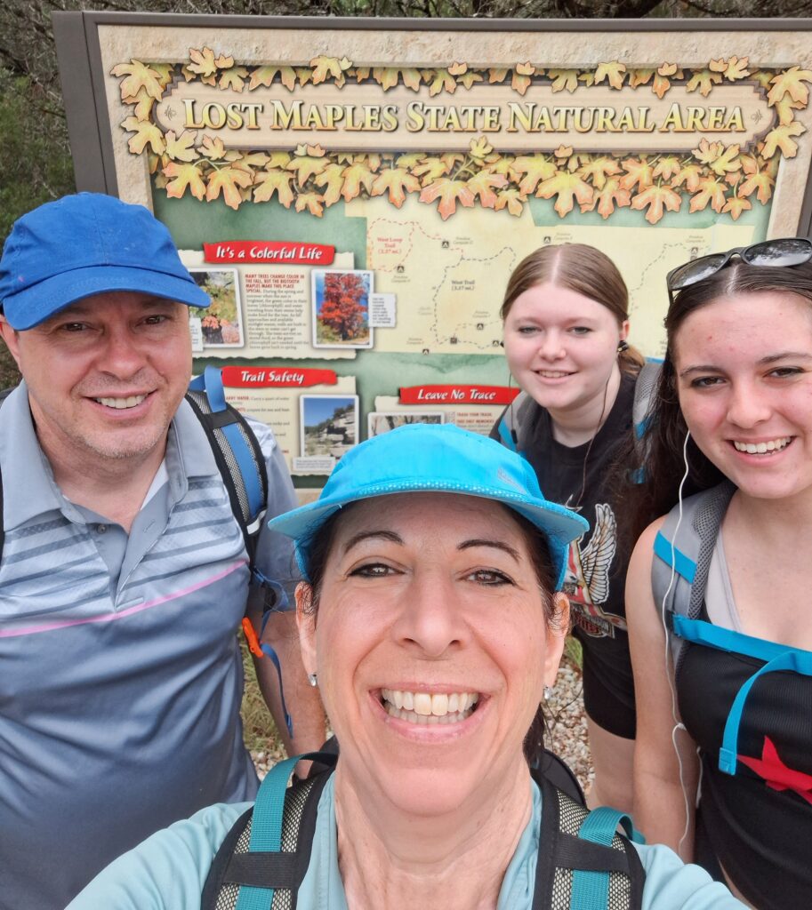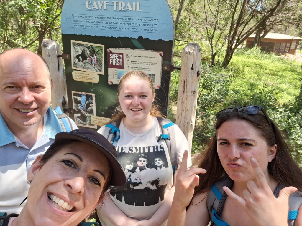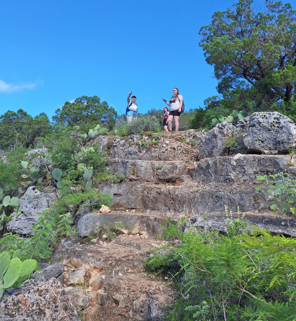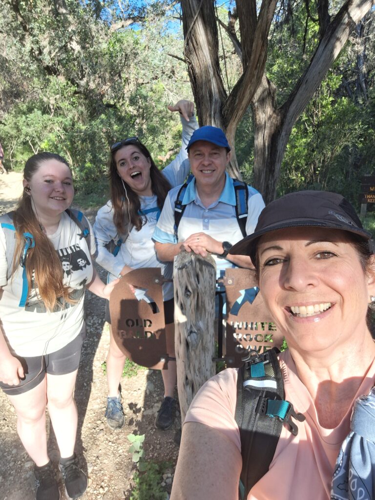 Family Vacation Day Six (Tuesday). Today Rachel drove us to Garner State Park in Concan, TX. We hiked the Old Baldy, Foshee, Bridges, and Crystal Cave Trails. First we took the trail up Mount Ol’ Baldy, a 500 foot steep and rocky climb. The views were awesome!