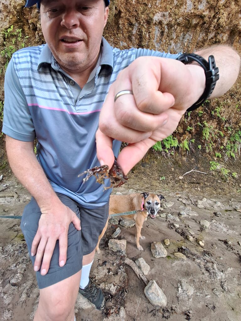 Dad’s favorite type of hiking is rocky and with bouldering and a bonus with caves (still to come)! He sure got that today!