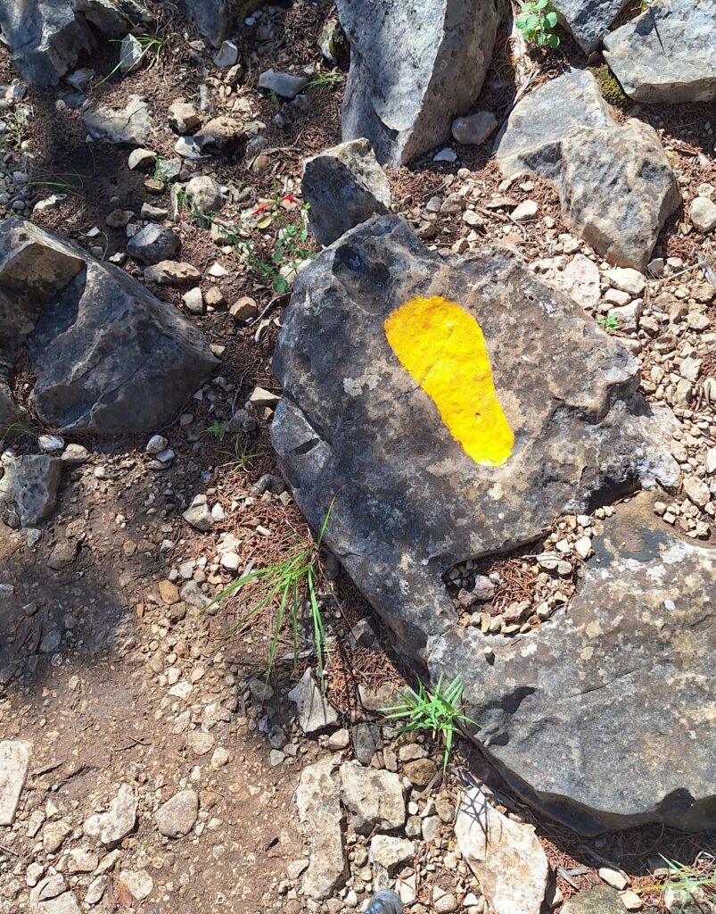 This is how we kept track of the trail. The trail blazes were yellow footprints on the rocks along the way: