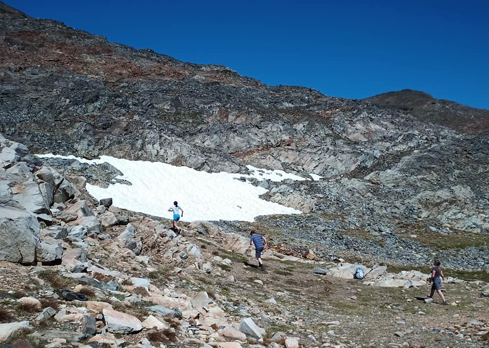 Dad and Rachel decided to go up to the snow patch across the lake!: