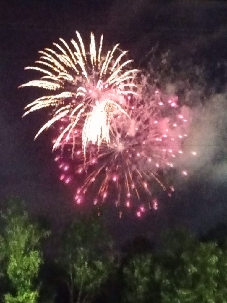 Our friends, the Barnetts, told us about a place we could park to watch the University fireworks show. We found the spot near the Barnetts and enjoyed the show (without the crowds):