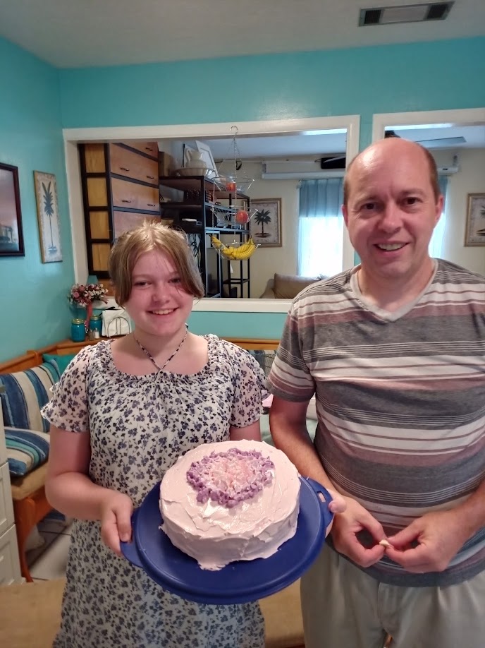 Rachel has been learning how to bake and she decided to try out cake baking with Dad’s help: