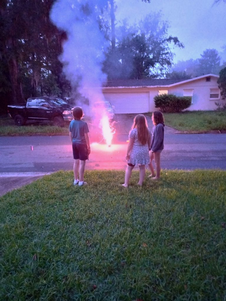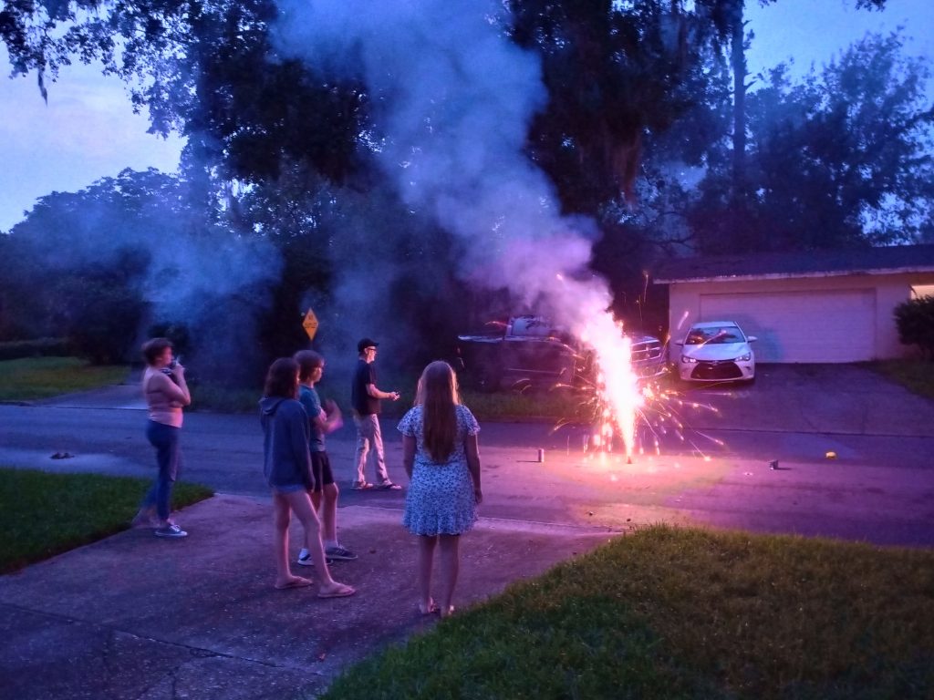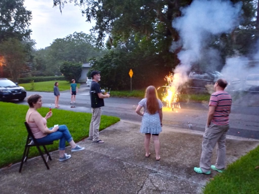The Lewis’ and Haden’s family invited us over for some fireworks (across the street from our house):