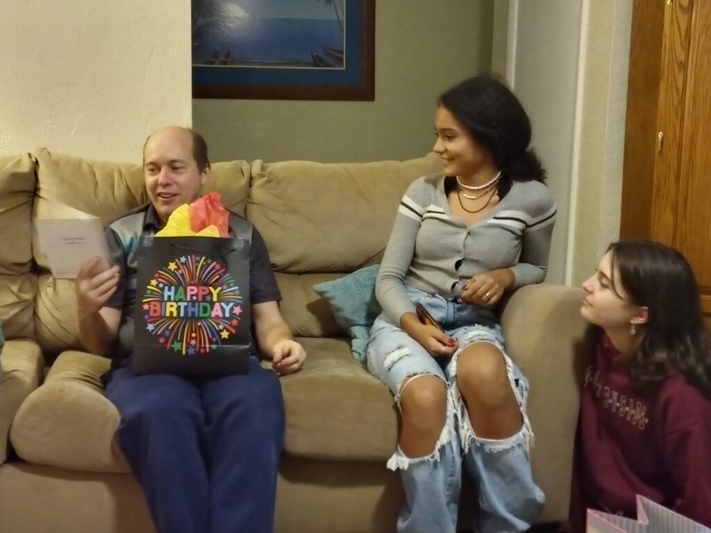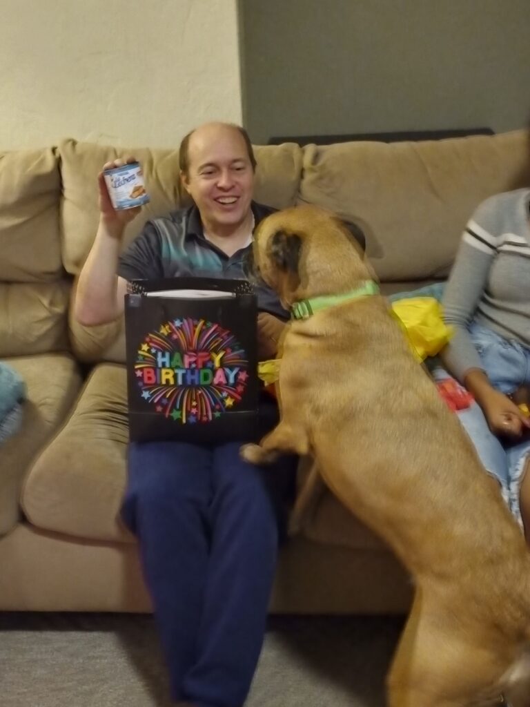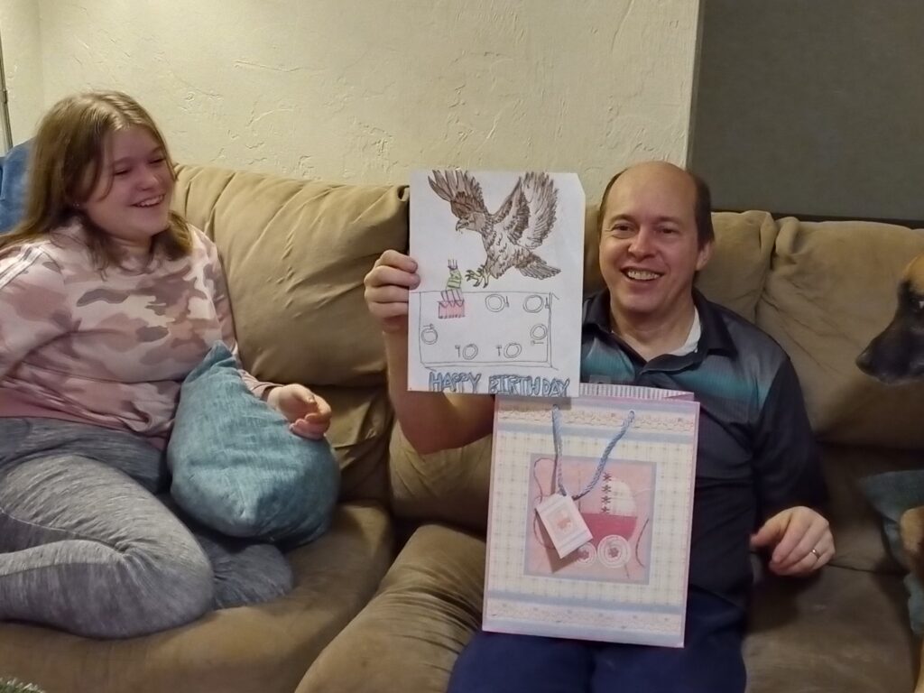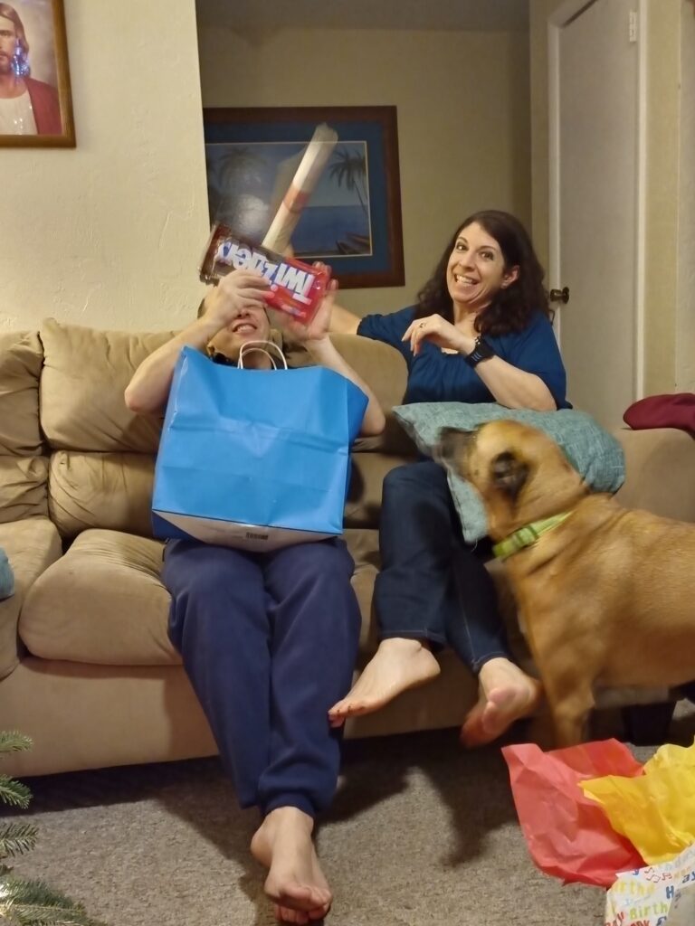 Our neighbor friends left birthday gifts at the door while we were away: