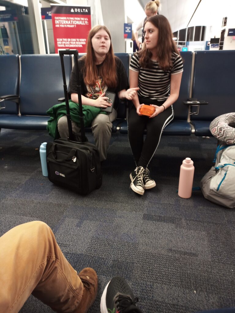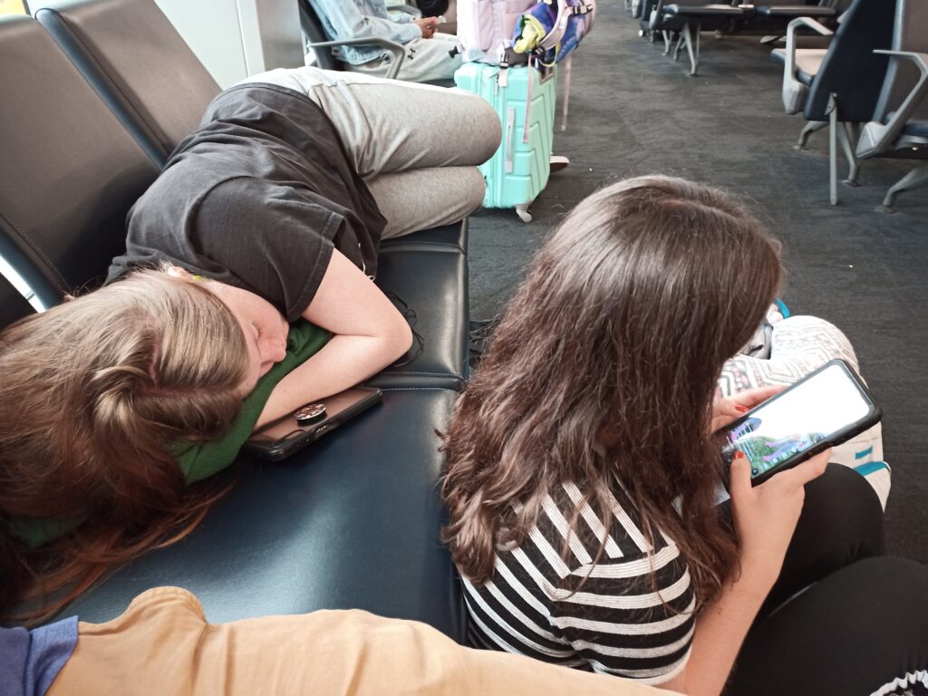 We made it to the airport and through check in and now just chillin’ waiting for the flight: