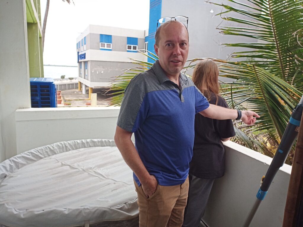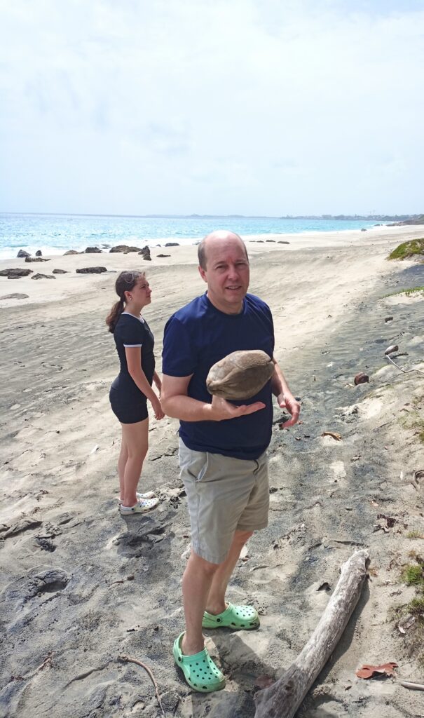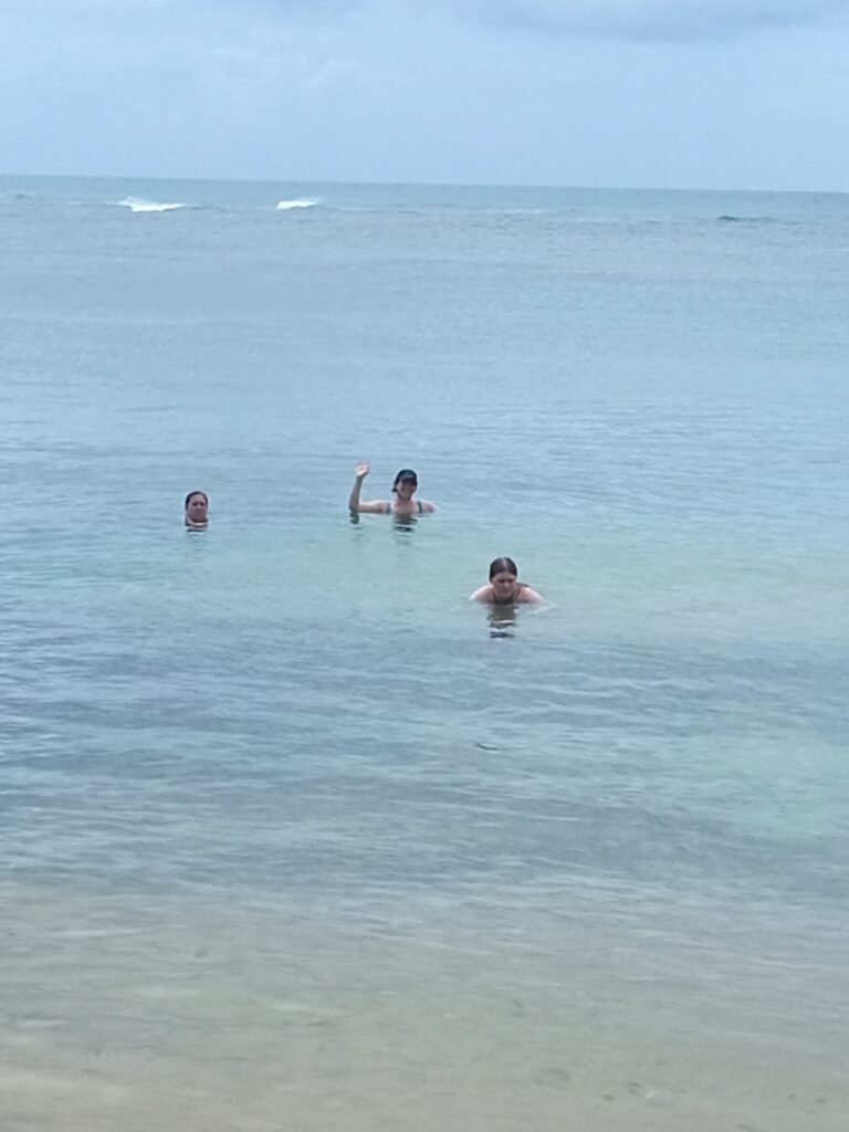 We went back to the airbnb and had another small adventure. There is a Noni fruit tree in the yard that even the host said the fruit is disgusting. Lizzy couldn’t resist trying it and of course she got Dad to join her in sampling said fruit. The fruit has a strong, vomit-like odor and taste.