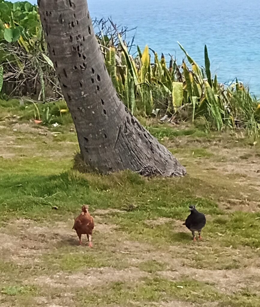 This morning we walked from our airbnb to the farmers market. There were of course chickens loose along the way: