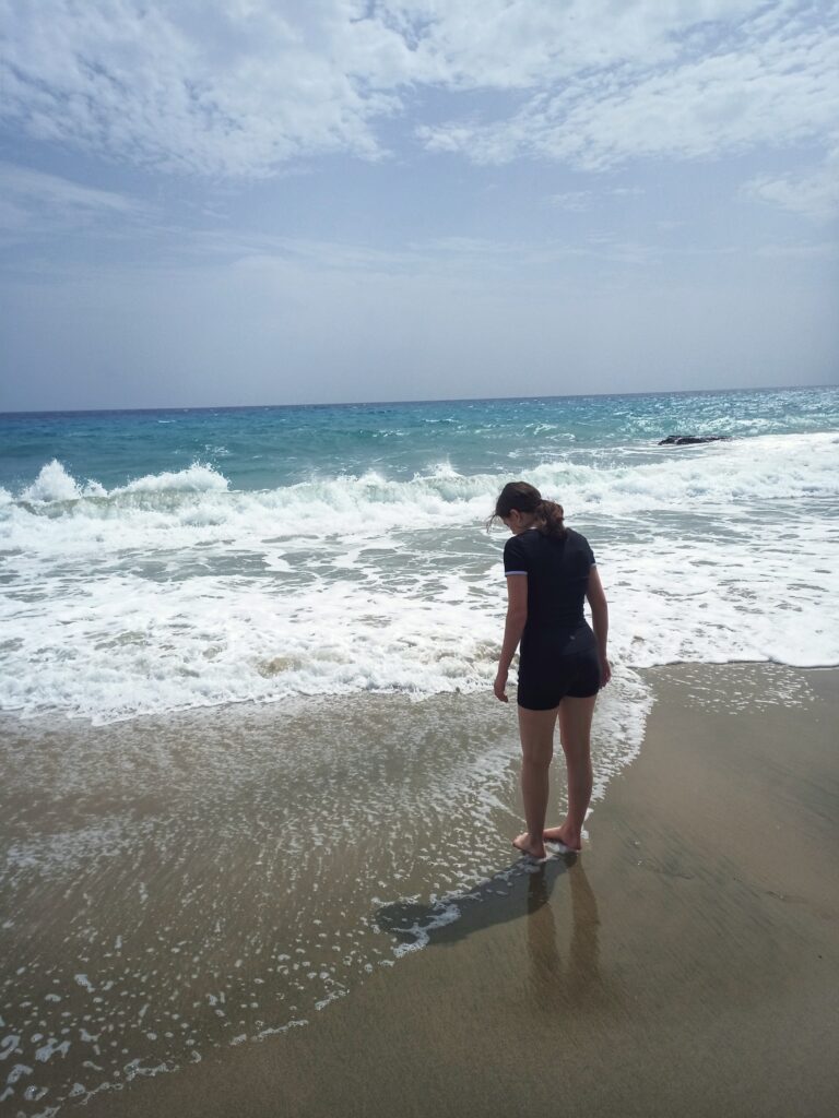 Rachel was the first one to go into the water: