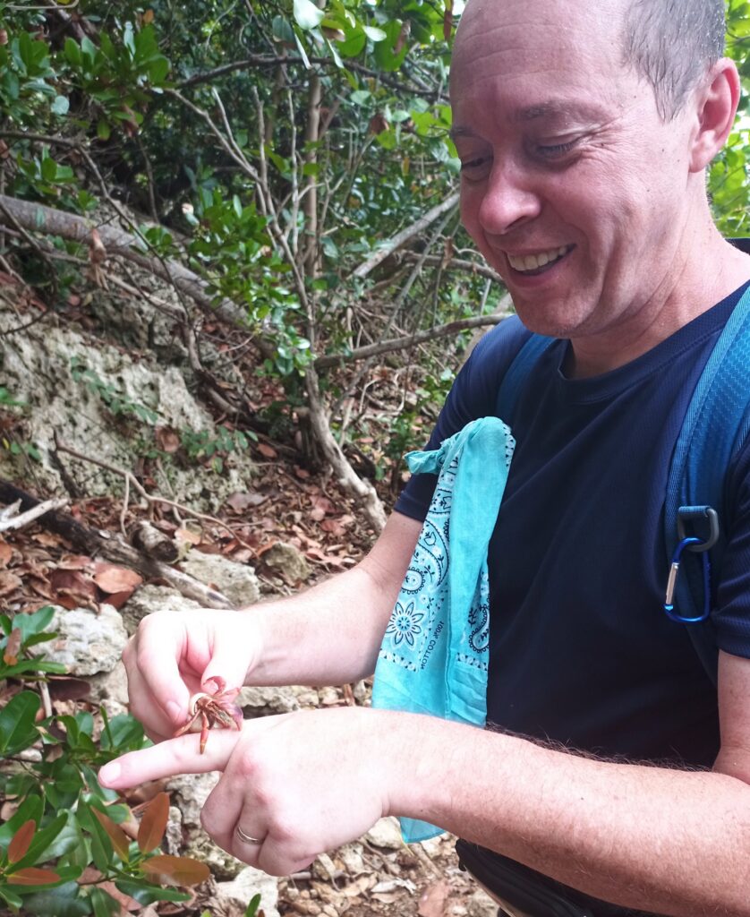 Rachel decided to pet the crab!