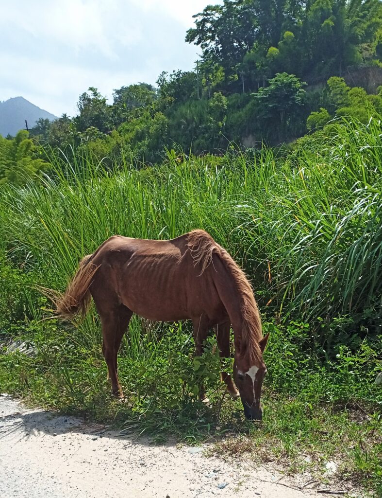 We made it safely to a point where we could park. On all the roads there are animals running free (dogs, cats, chickens, horses, goats, etc.,):