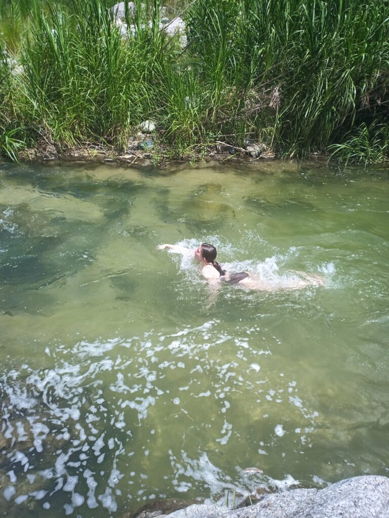The current got a little strong for swimming but she struggled through it: