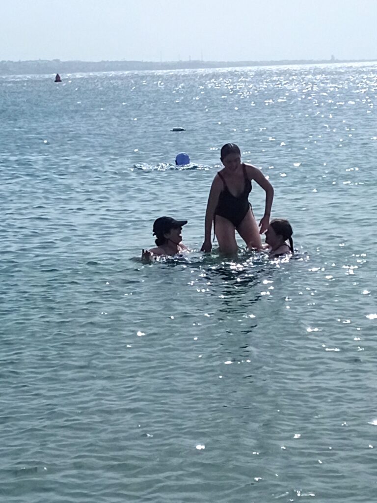 We then went to a swimming beach not far from the house. Dad rested on the beach while we swam and played around: