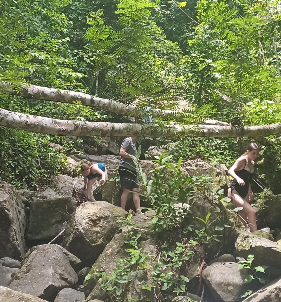 While Lizzy , Rachel and Dad climbed up on the waterfall and explored the top: