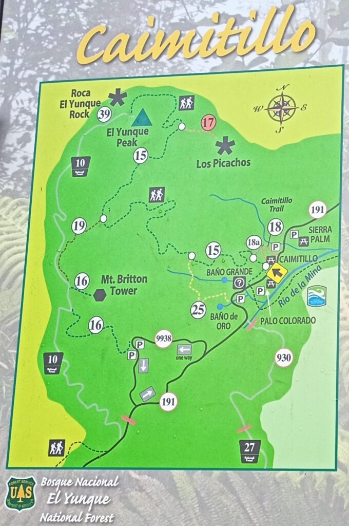 It was a very foggy and overcast morning but the temperature was not too bad for hiking. Our hiking plan for this morning is hike to Mt. Britton and then to El Yunque Peak: