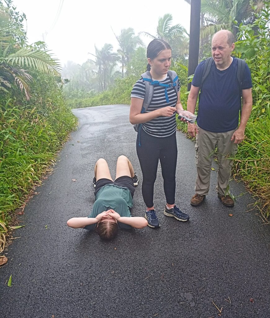 After the tower we went up to El Yunque Peak. The actual trail to El Yunque is closed due to damage from a recent hurricane. So, we had to take the steep service road all the way up. As if it wasn’t hard enough, Dad challenged Lizzy to a race up a section of the climb to El Yunque!