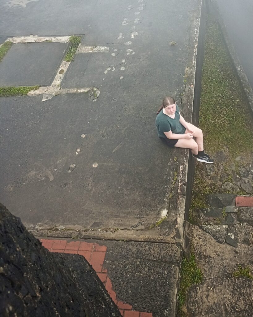 Dad and Lizzy decided to go down the storm run-off :