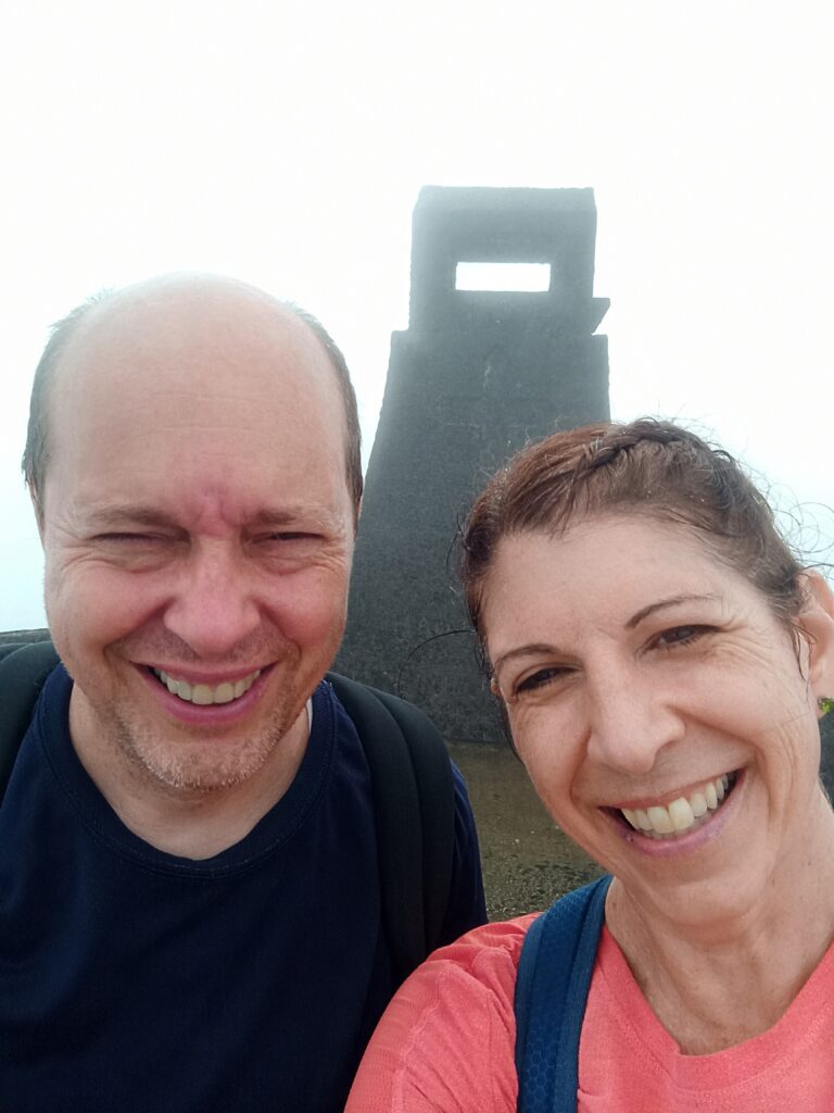 On top of the tower. Only fog for a view but we made it!