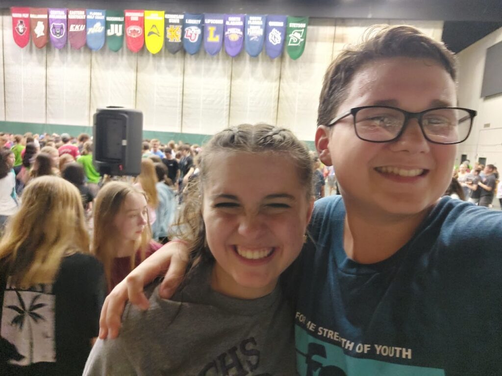 Mom and Rachel explored the upper level and ran into some friends: