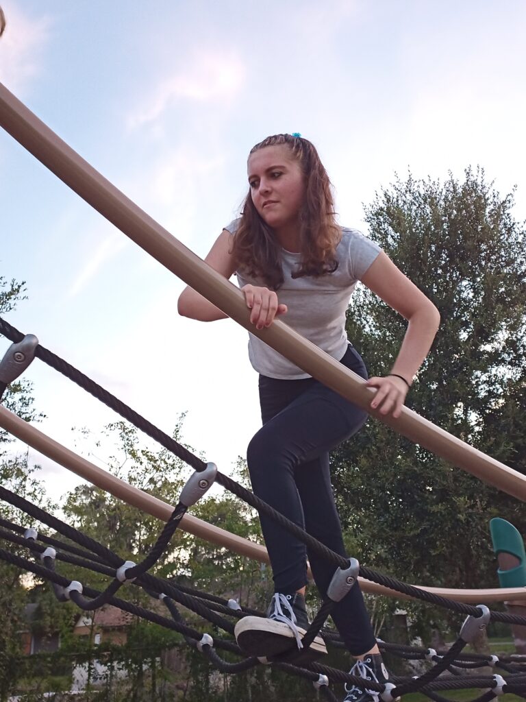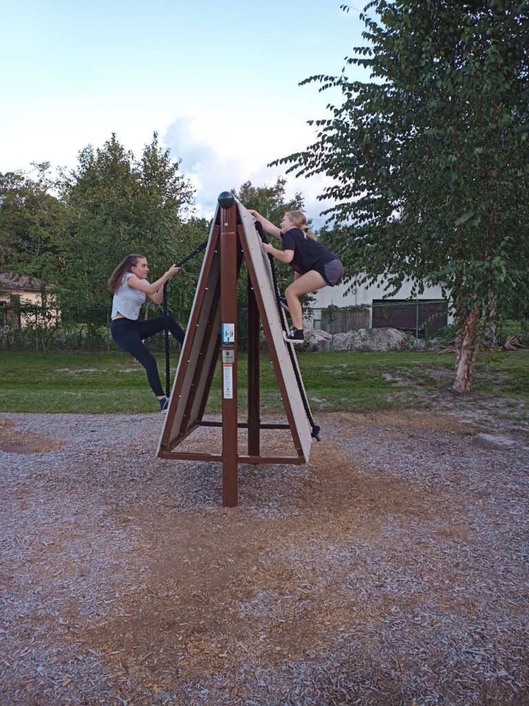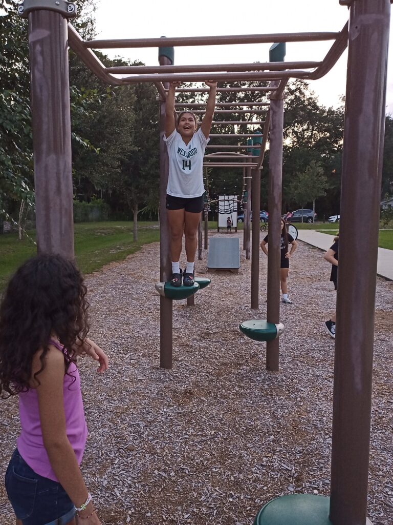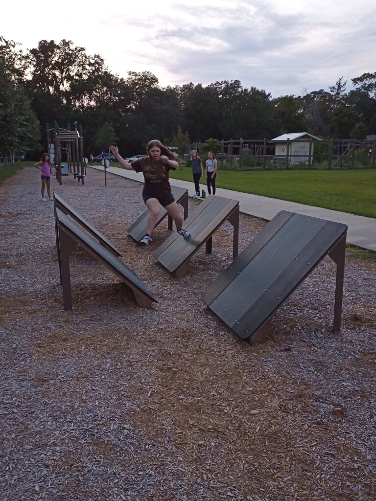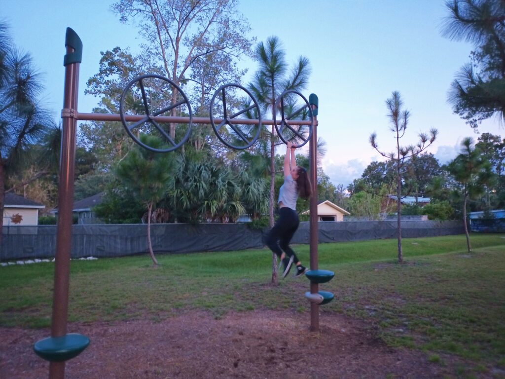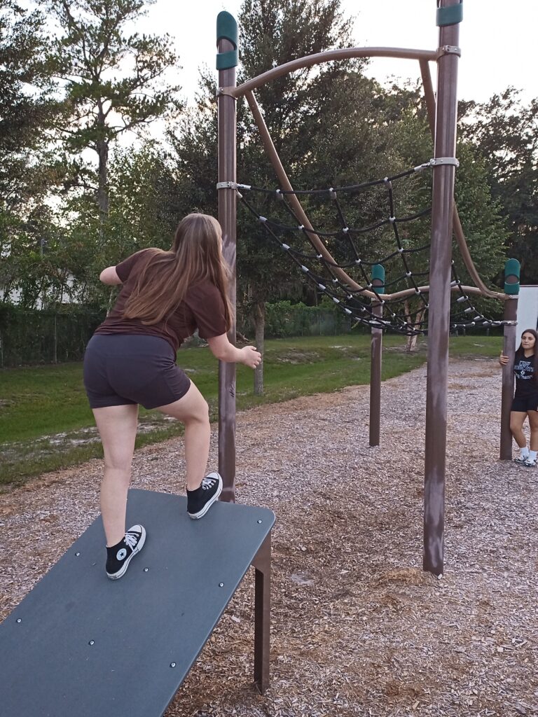 We went to a local park that had obstacle course equipment: