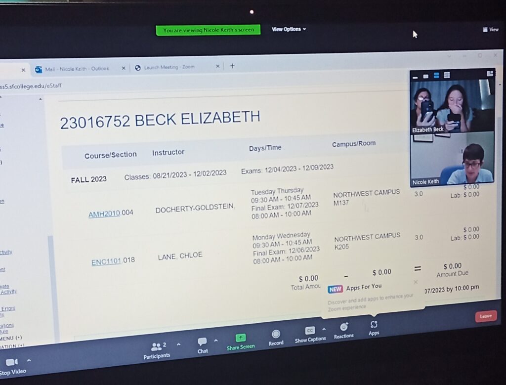 Lizzy had a zoom meeting with her Sante Fe College counselor to pick her classes! Mom was invited too: