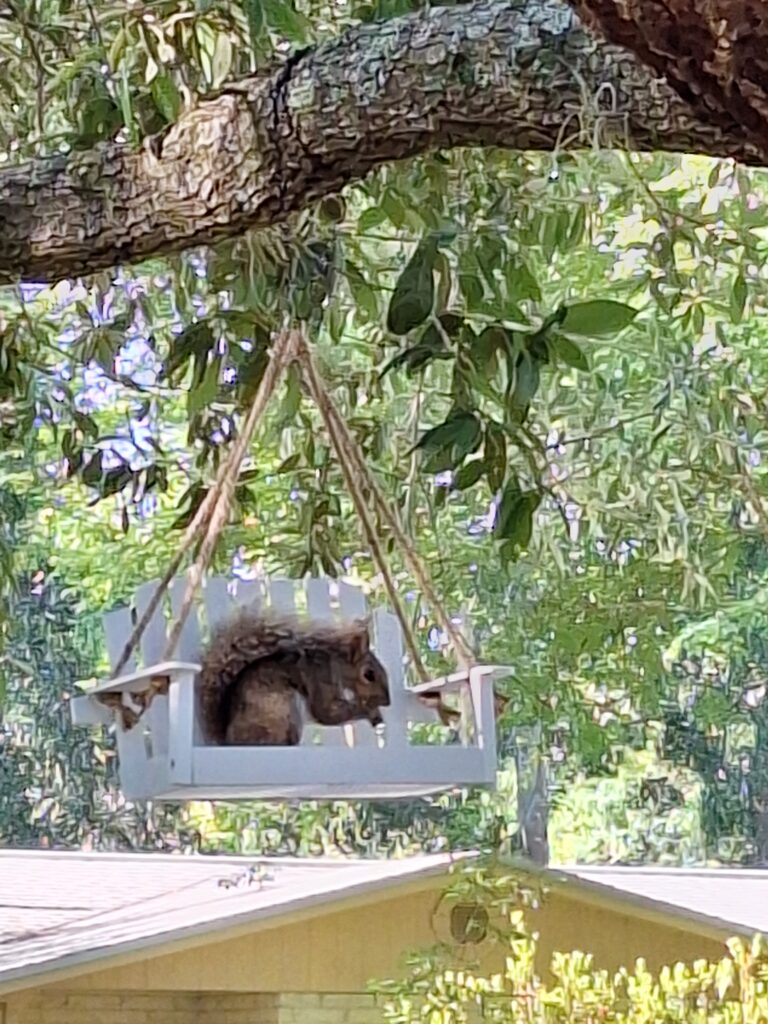 Mom feeds the neighborhood birds but not the neighborhood squirrels by choice.