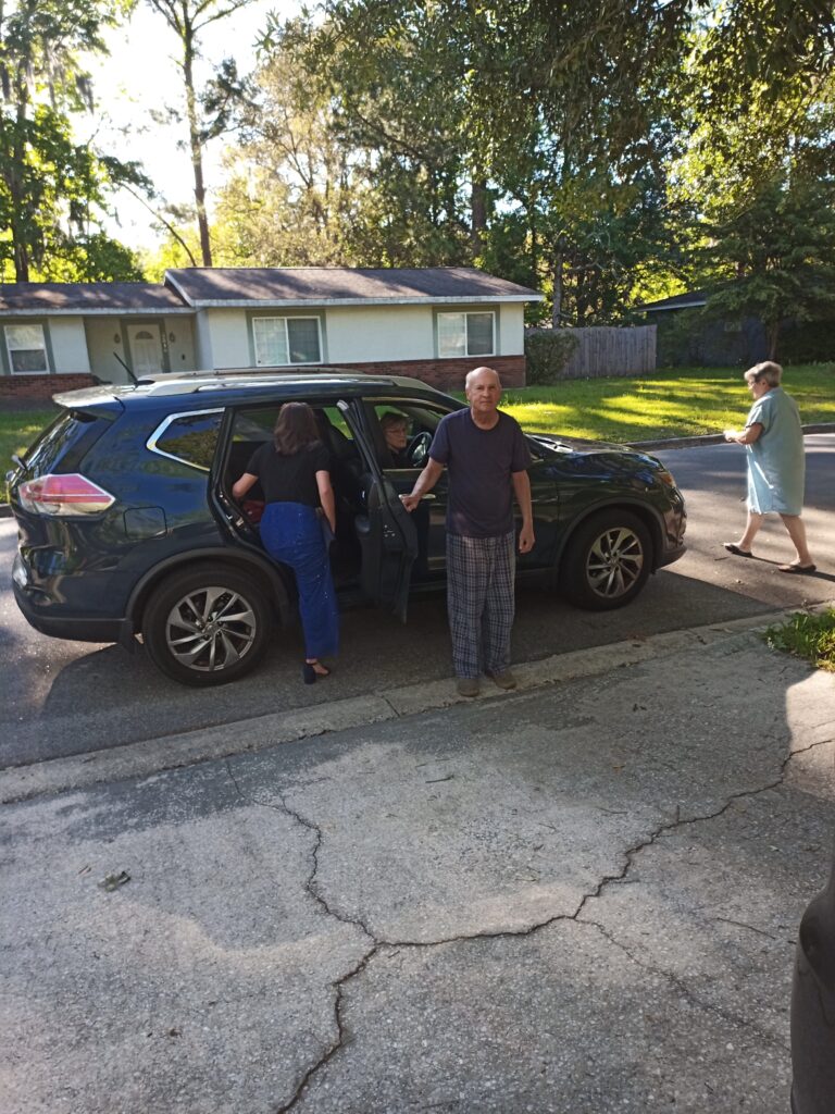 Sister Lewis and sister Michael drove her to the Stake Center for LDS Prombecause their grandson was also going to prom and they wanted to take pictures of him too. Brother Lewis helped too: