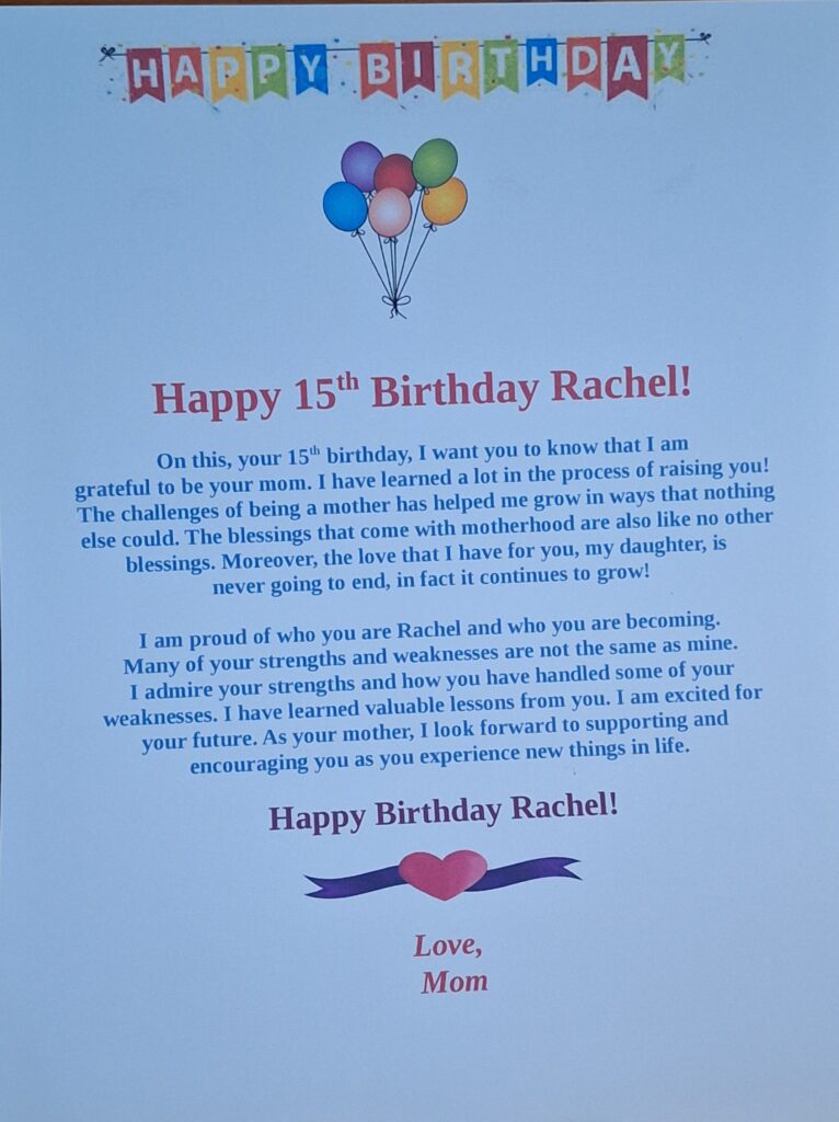 Happy Birthday Rachel from Grandpa Ed and Grandma Joyce: