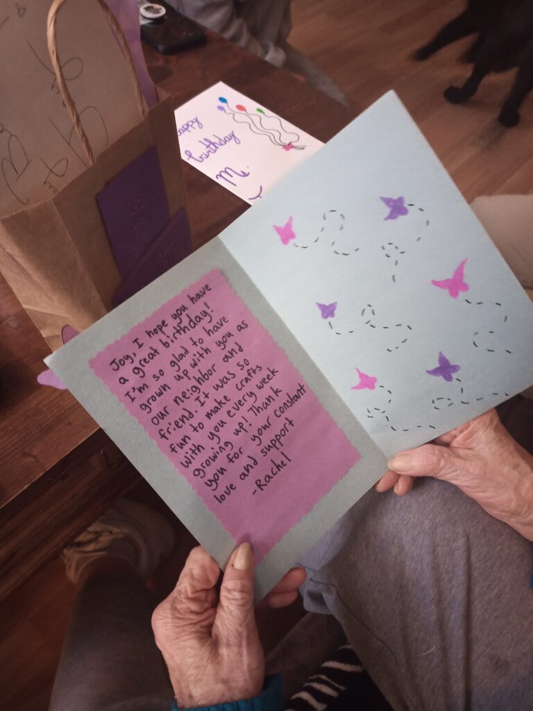 We celebrated Mom’s Birthday. Mom got a card from her friend Nancy: