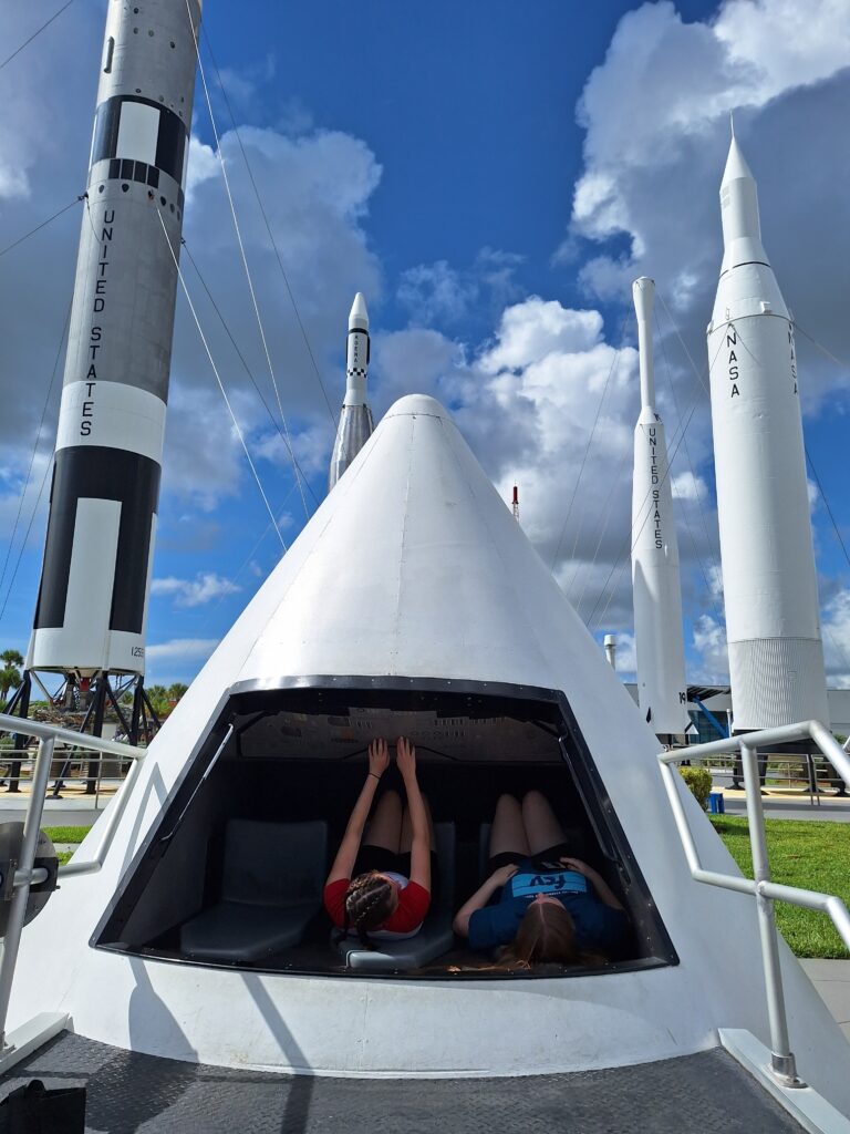 Why did we go to Cocoa Beach? Well, The Kennedy Space Center is on Mom’s bucket list of things to do before moving away from Florida; we have never been to Cocoa Beach; and Lizzy met a boy at FSY named Ryan who lives in Cocoa Beach so here we are!
