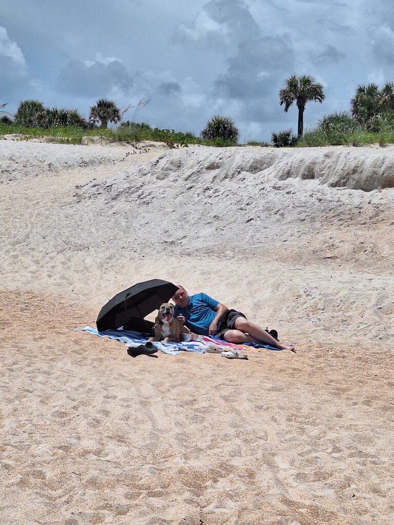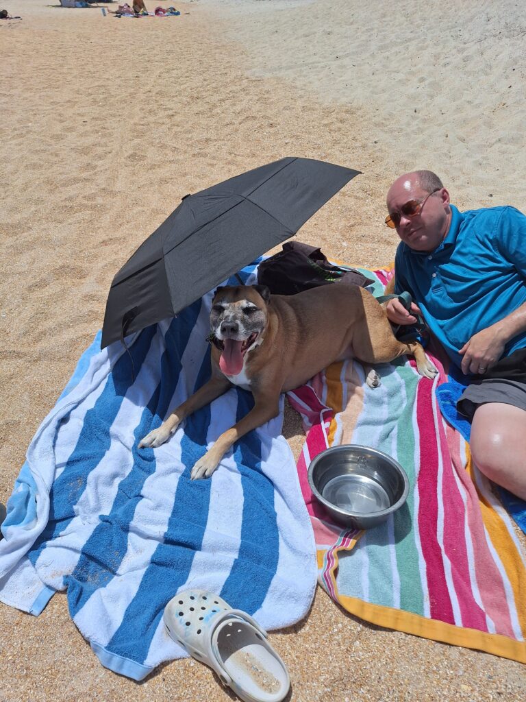 On the way home we stopped at another beach. Dad and Luna relaxed on the beach while we swam: