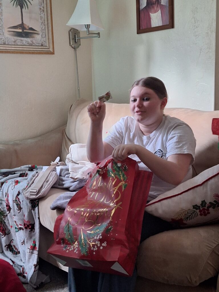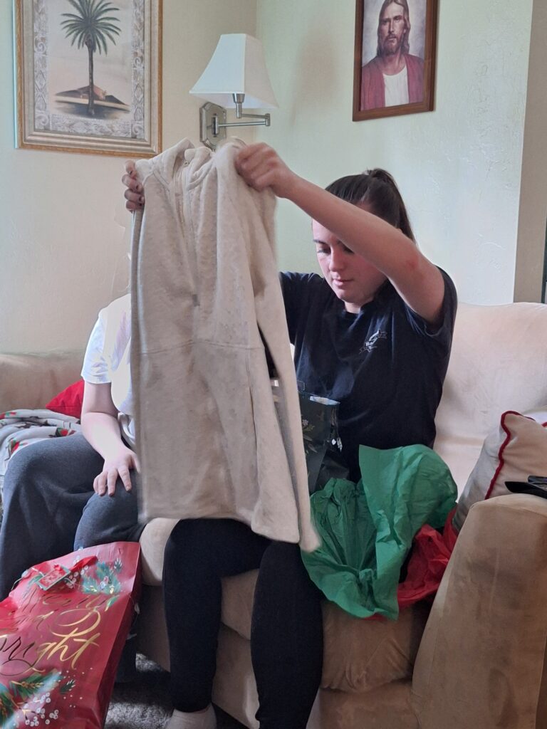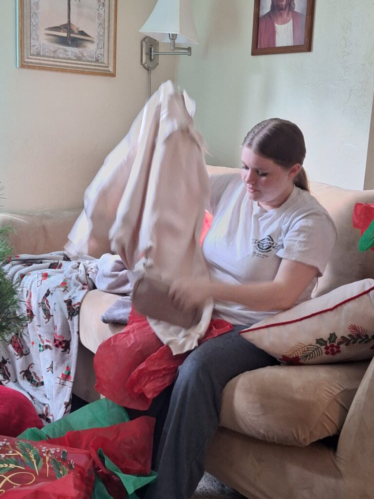 We saw the Araque family at church today and we exchanged gifts. We weren’t able to open them until we got home from church because they didn’t stay at church for the second hour.