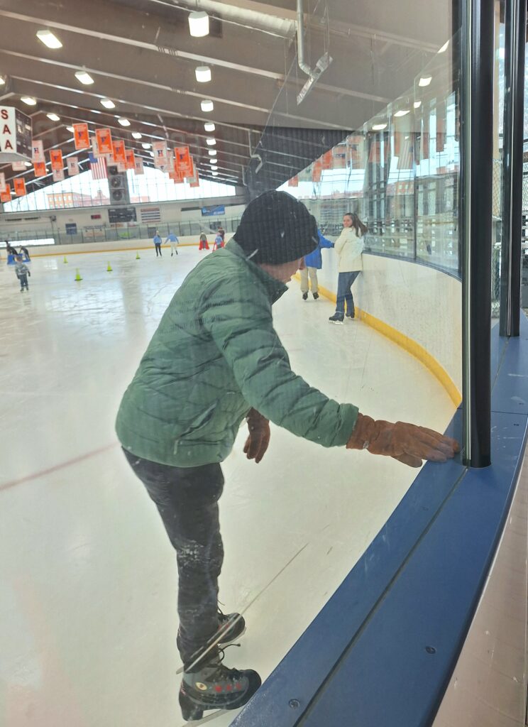 After several falls, and landing on a random guy, Dad was happy to get out of the rink!