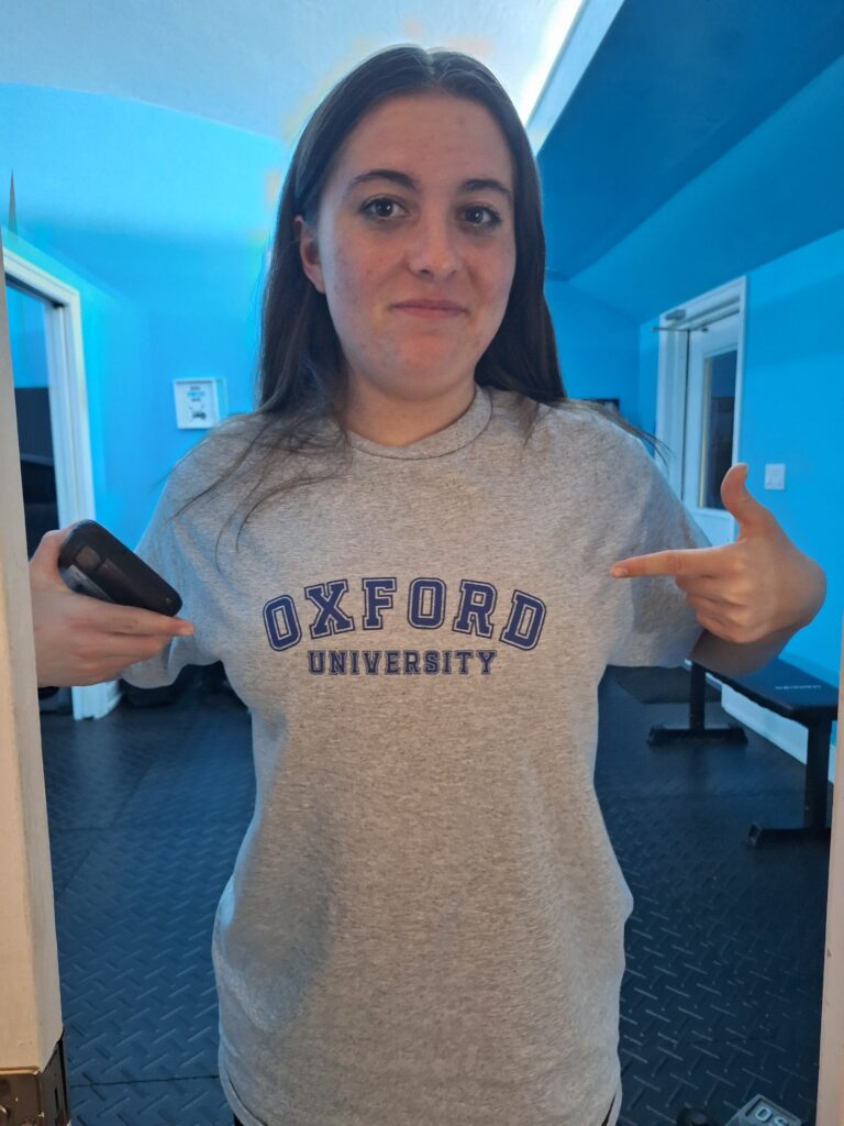 Today at GHS was wear your college admission shirt to school day for seniors. Lizzy and her best friend Yara had these shirts made: